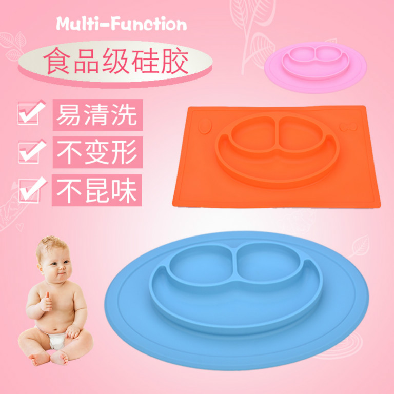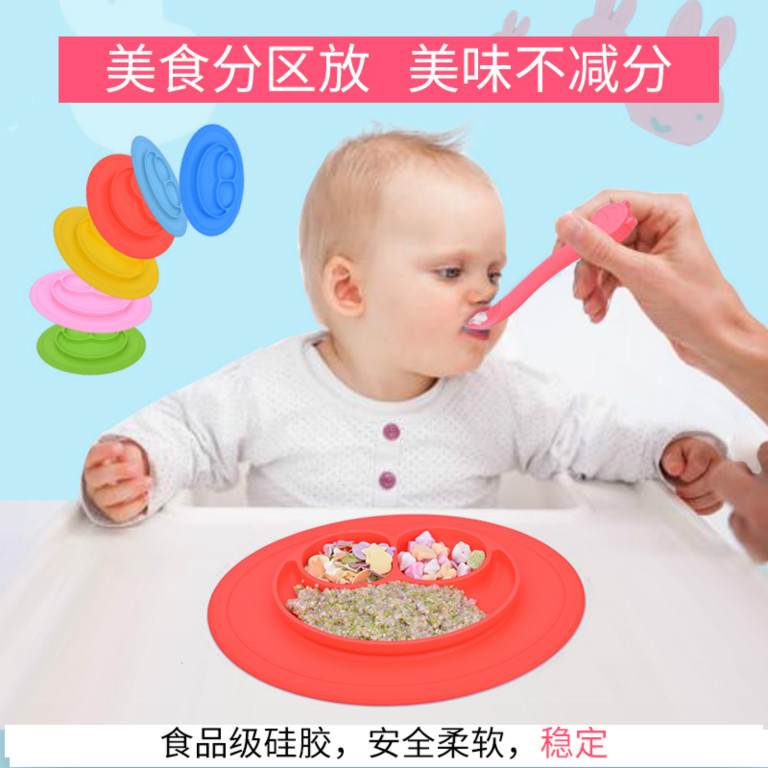 3.餐盤+餐墊一體式創(chuàng)新設(shè)計,吸力吸盤直接吸附在桌面上,防止寶寶手動打翻