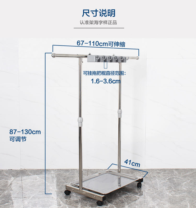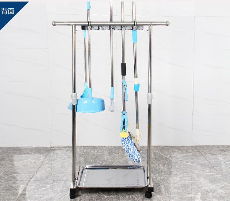 16掛不銹鋼可移動(dòng)拖把架落地式掛架掃把墩布置物架011