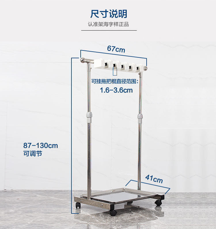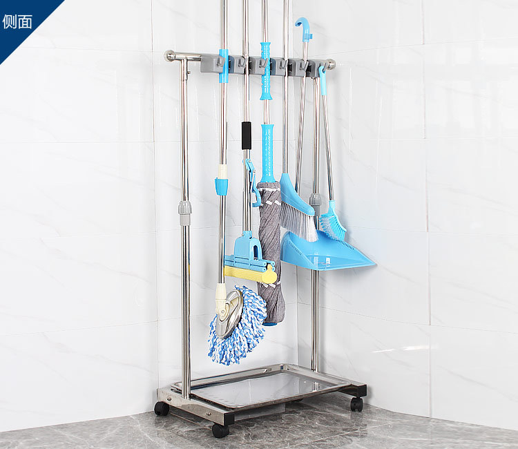 16掛不銹鋼可移動(dòng)拖把架落地式掛架掃把墩布置物架011