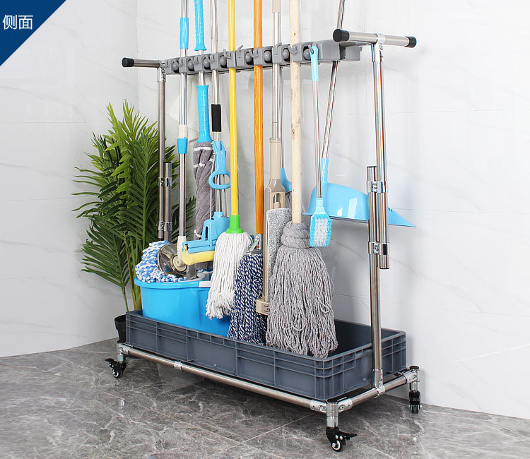 011陶瓷不銹鋼可移動(dòng)拖把架落地金屬收納墩布架子10掛12鉤