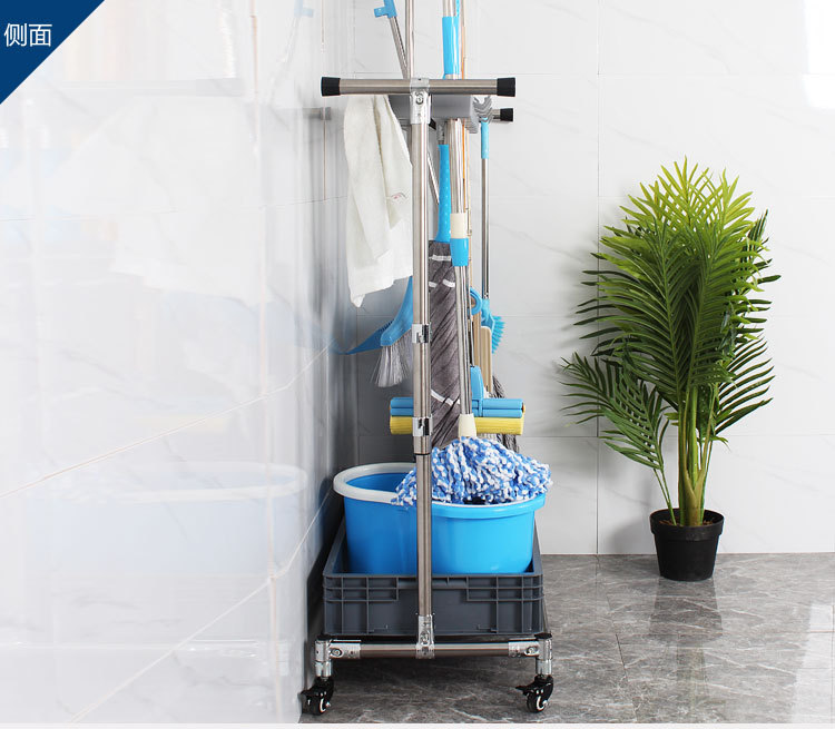 011陶瓷不銹鋼可移動(dòng)拖把架 落地金屬收納墩布架20掛24鉤