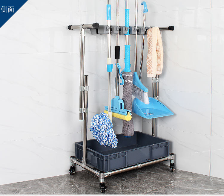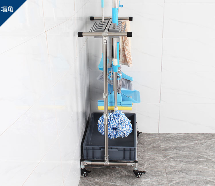 16掛不銹鋼可移動拖把架落地式掛架掃把墩布置物架011