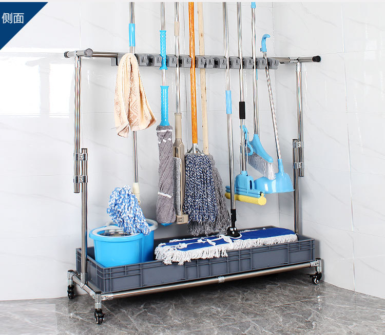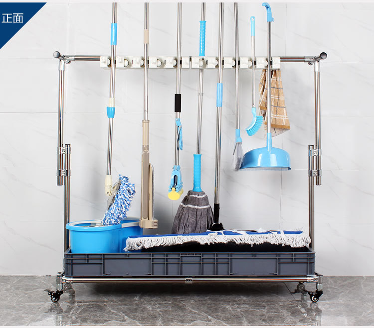 16掛不銹鋼可移動(dòng)拖把架落地式掛架掃把墩布置物架011