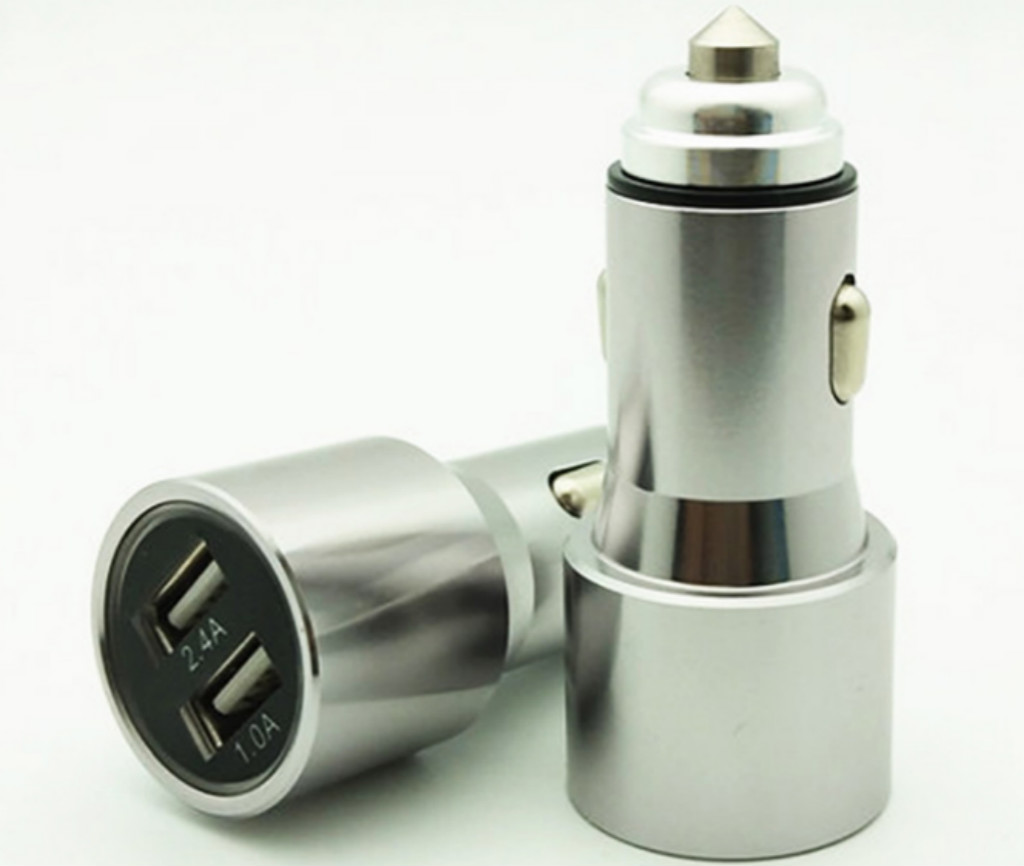 012車載充電器 數顯安全錘 汽車手機充電器金屬USB多功能