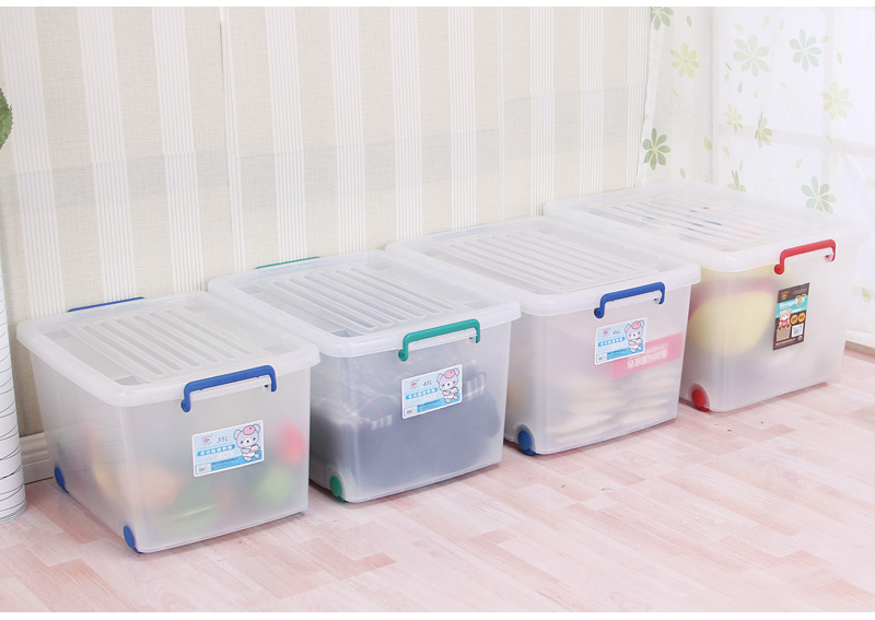 01帶滑輪收納箱 塑料整理箱 家用透明大號(hào)塑料箱 車載儲(chǔ)物箱