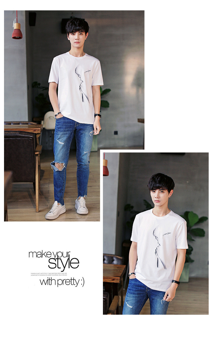2018男裝新款夏季韓版男式t恤 純棉個性潮流男士短袖印花t