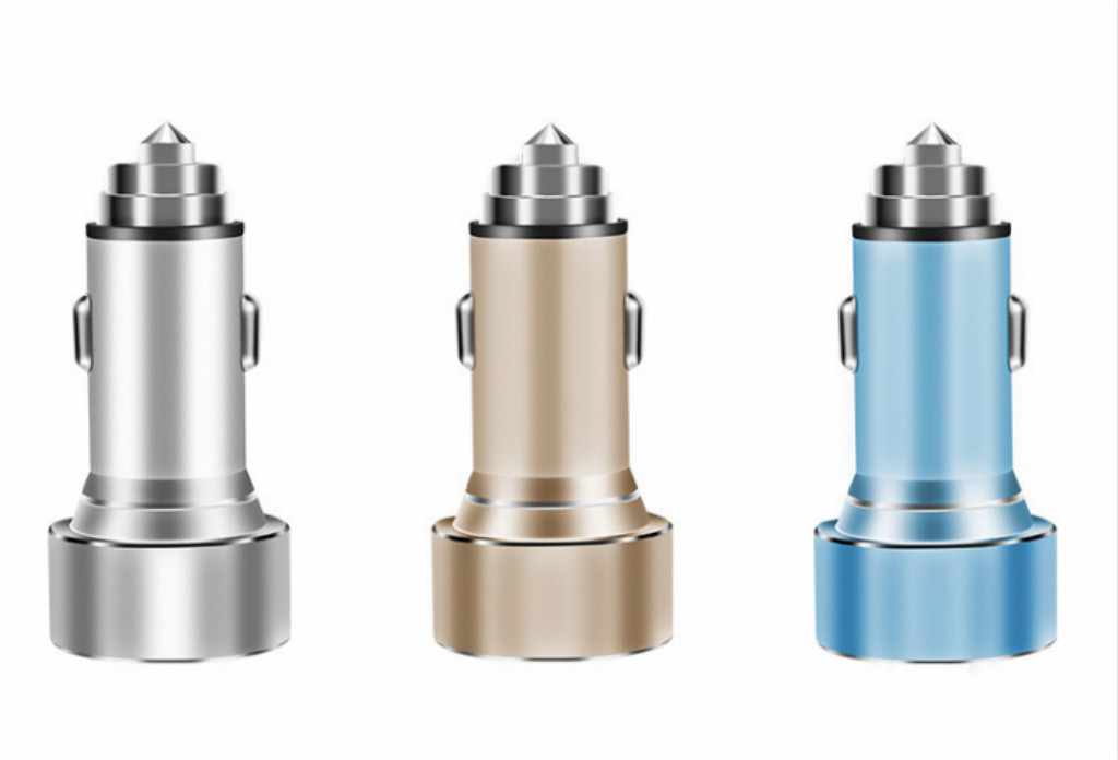 012車載充電器 數(shù)顯安全錘 汽車手機充電器金屬USB多功能